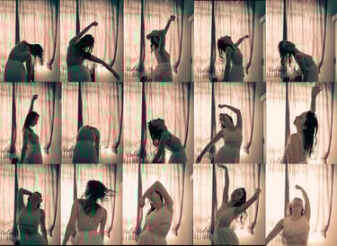 “Danço, Apesar de Tudo” é uma fotoperformance que celebra o corpo em diálogo com o doméstico. Através de uma dança íntima, resgata gestos e memórias, transformando a quitinete em palco.