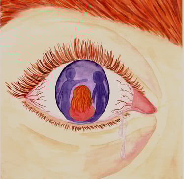 Surge de um verso de dor: “meus olhos queimando em brasa…” É uma ponte entre passado e presente, um ritual de catarse. Através de pinceladas intensas, a ferida é reconstruída como narrativa de resistência.
