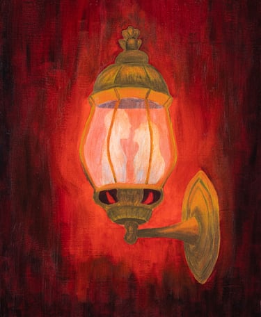 Em “Vestígios da Chama”, um lampião encena o amor nascido da carência: luz que já foi abrigo e agora projeta sombras. Entre o dourado do metal e o vermelho pulsante, coexistem permanência e perda. A obra captura o desfazer do vínculo: manter a chama por medo, até ter coragem de deixar ir — e entender que algumas luzes viram lembrança.